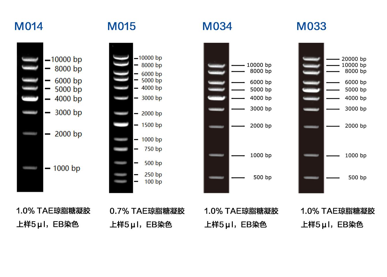 本產(chǎn)品為預(yù)混有 1x 上樣緩沖液的即用型 DNA 分子量標準,由 13 條線狀雙鏈 DNA 條帶組成,適用于對 100 bp 至 10 kb 的雙鏈 DNA 分子大小的估算和粗略定量。本產(chǎn)品的 13 條帶分別為 100,250,500,750,1000,1500,2000,3000,4000,5000,6000,8000 和 10000 bp。其中 1500 bp、750 bp 條帶濃度最大,為 20 ng/µl,其余條帶濃度約為 10 ng/µl。