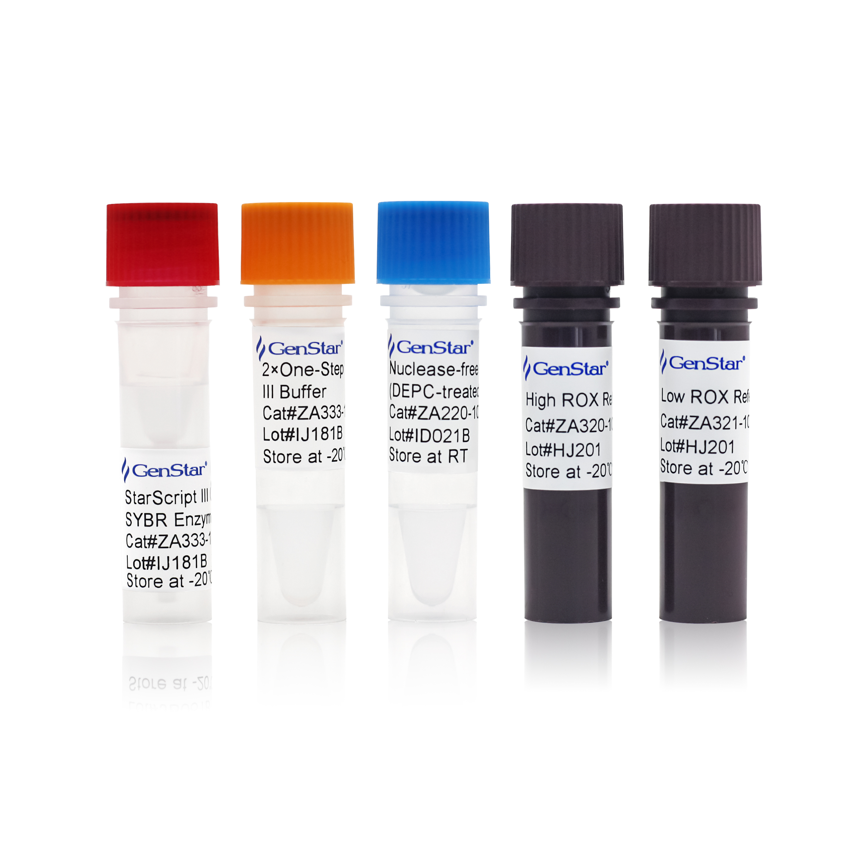 StarScript III One-Step qRT-PCR SYBR Kit 是采用 SYBR Green I 嵌合熒光法進行一步法實時熒光定量檢測的專用試劑盒。使用本制品進行 Real Time RT-PCR 反應時以提取的 RNA 為模版,在同一反應管內連續(xù)進行反轉錄和熒光定量檢測,操作簡單,并能有效防止污染?;?StarScript III 反轉錄酶、抗體型 HotStart Taq DNA 聚合酶、配合優(yōu)化的 Buffer 體系,對于二級結構復雜和 GC 含量高的 RNA 模板擴增效果好,非常適合于 RNA 病毒等微量目標基因的檢測。
