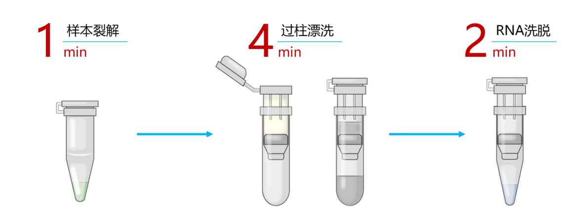 操作步驟簡單快速,可在 7 min 內(nèi)完成單個樣品 RNA 的提取,無需使用苯酚和氯仿等有機溶液,操作安全性更高。