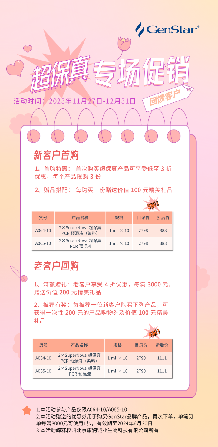獲此殊榮,離不開廣大客戶的信任和支持,GenStar 特推出超保真產(chǎn)品終極感恩特惠購,和您共享這份榮譽和喜悅,與您共赴生命科學(xué)成功之路。