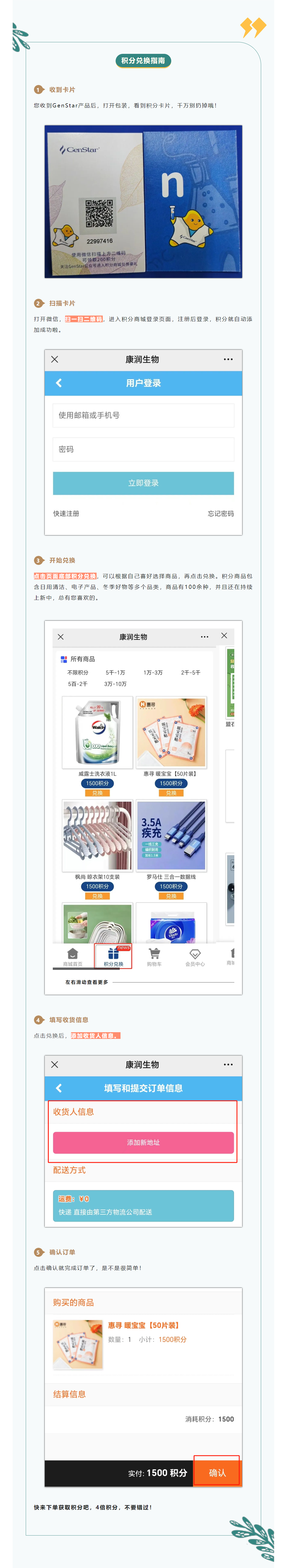 作為GenStar產(chǎn)品忠實用戶,不會用積分,那豈不是錯過了一個億?積分可用于GenStar積分商城(點擊進入)兌換禮品,積分越多,禮品越優(yōu)厚。不知道怎么操作?別擔(dān)心,來看看下方的兌換指南!