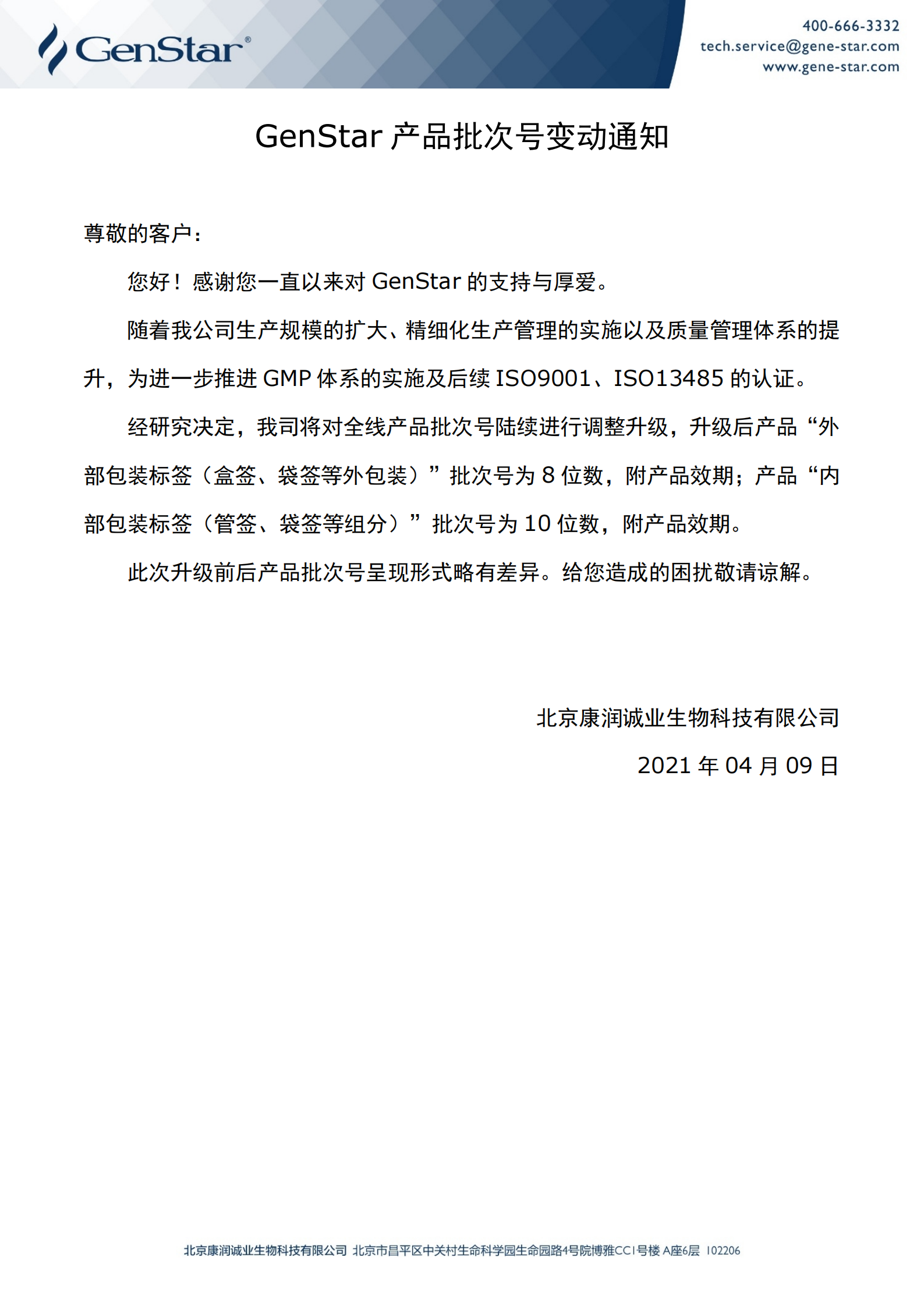 GenStar產(chǎn)品批次號(hào)變動(dòng)通知